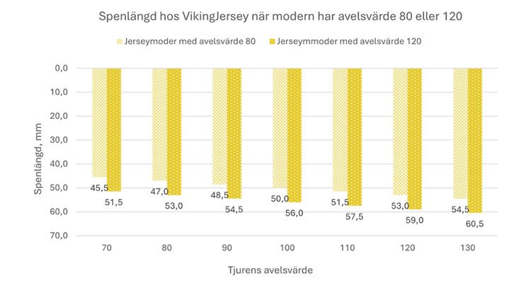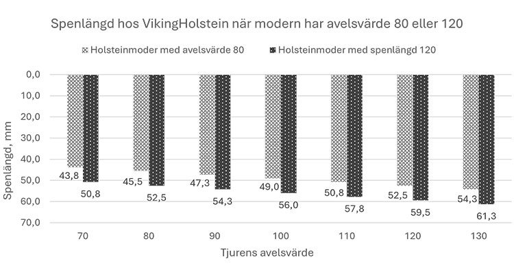 - VikingHolstein avelsvärde 115 vilket motsvarar en spenlängd på 55 mm