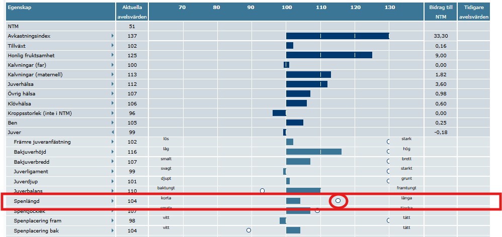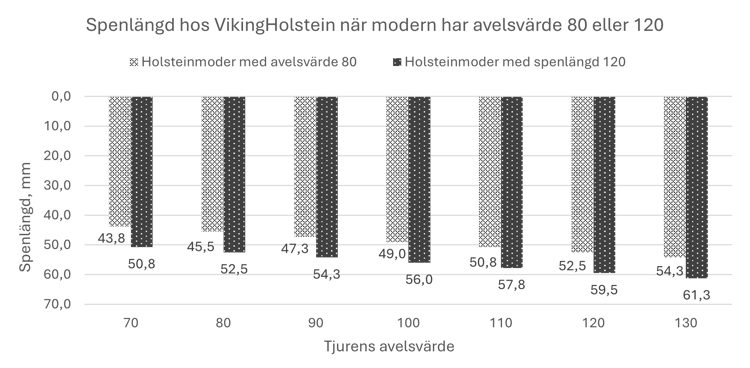 - VikingHolstein avelsvärde 115 vilket motsvarar en spenlängd på 55 mm