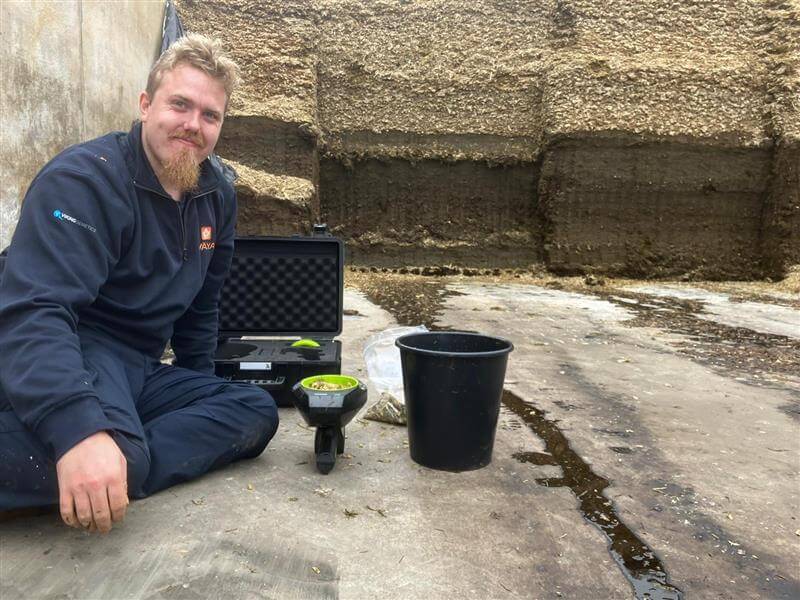 Den handhållna NIR-sensorn trinamix PAL Two har tagits fram av trinamiX i samarbete med Eurofins. Vi har hittills testat sensorn på vall- och majsensilage med gott resultat, och planerar att under våren utvärdera den även i växande vall. Det skulle möjliggöra fler mätningar per parti av ensilage och ge beslutsunderlag inför skörd av grovfoder.