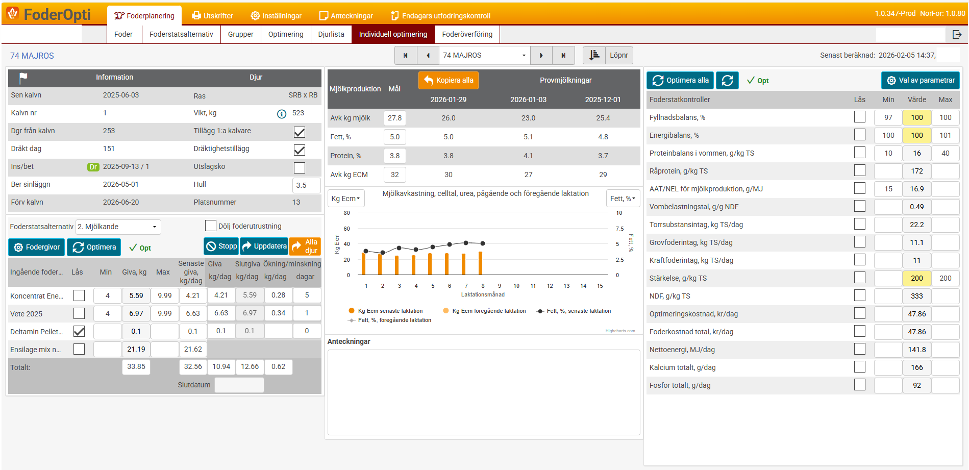IndividRAM® har varit ett uppskattat verktyg, men FoderOpti™ bygger på en modernare och mer robust teknisk plattform. Skillnaderna i periodresultat och beräkningar mellan programmen har analyserats noggrant och FoderOpti™ ger mer konsekventa och tydliga resultat tack vare NorFors OFC-modell som nu används fullt ut.